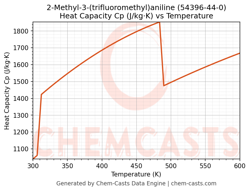 - Specific heat capacity (Cp) indicates the amount of energy required to raise the temperature of 2-Methyl-3-(trifluoromethyl)aniline and is critical for energy balance and heat-exchanger design.
