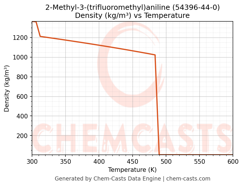 This page presents the temperature-dependent thermodynamic and transport properties of 2-Methyl-3-(trifluoromethyl)aniline (CAS 54396-44-0) calculated at a constant pressure of 1 atm (101325 Pa) over the temperature range 250-500 K.