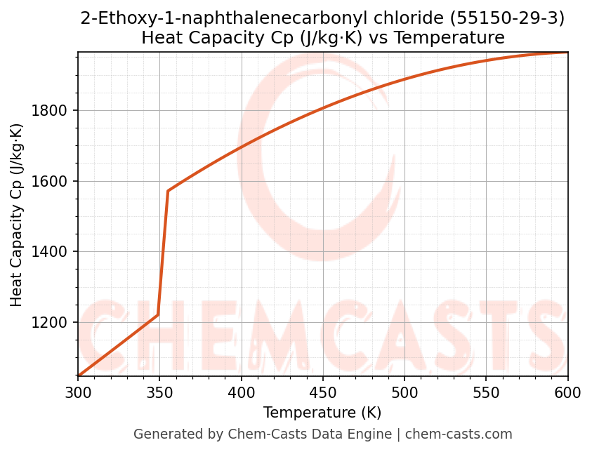- Specific heat capacity (Cp) indicates the amount of energy required to raise the temperature of 2-Ethoxy-1-naphthalenecarbonyl chloride and is critical for energy balance and heat-exchanger design.