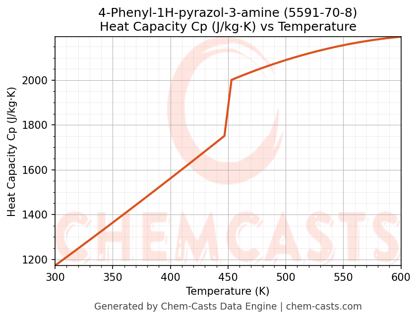 - Specific heat capacity (Cp) indicates the amount of energy required to raise the temperature of 4-Phenyl-1H-pyrazol-3-amine and is critical for energy balance and heat-exchanger design.