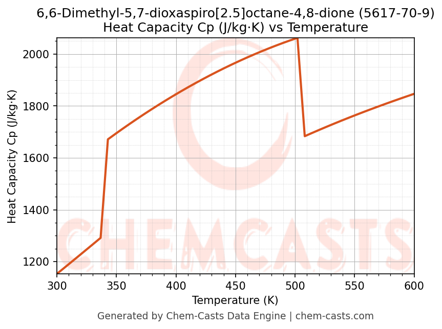 ![Heat Capacity (Cp) vs Temperature chart for 6,6-Dimethyl-5,7-dioxaspiro[2.5]octane-4,8-dione (CAS 5617-70-9)](https://chemcasts-prod.s3.ap-south-1.amazonaws.com/chem_plots_pconst/5617-70-9-cp.png)
