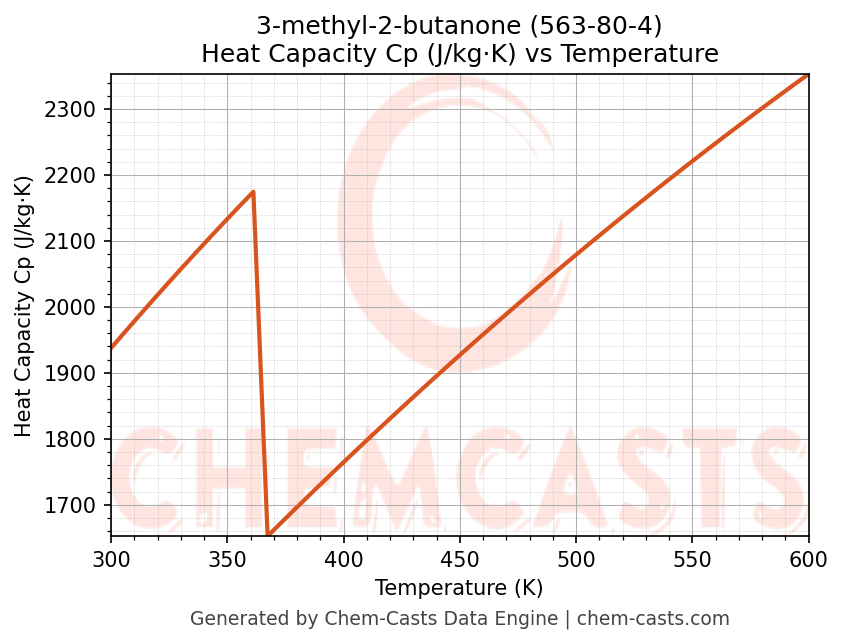 - Specific heat capacity (Cp) indicates the amount of energy required to raise the temperature of 3-methyl-2-butanone and is critical for energy balance and heat-exchanger design.