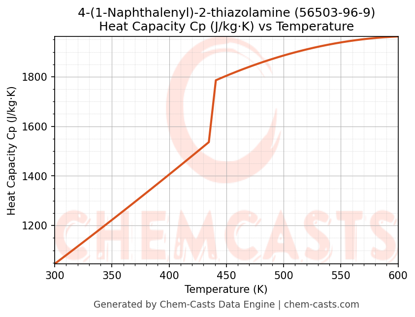 - Specific heat capacity (Cp) indicates the amount of energy required to raise the temperature of 4-(1-Naphthalenyl)-2-thiazolamine and is critical for energy balance and heat-exchanger design.
