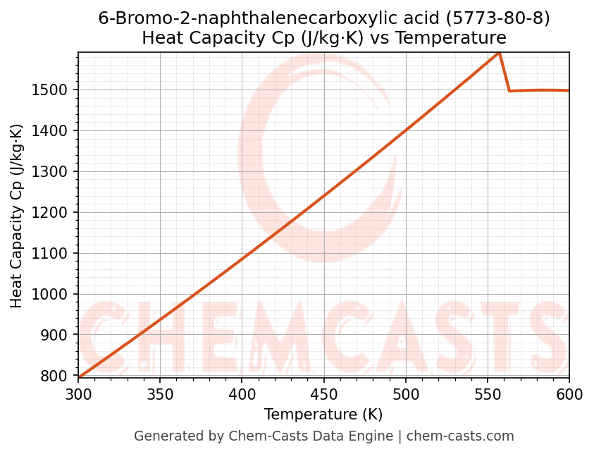 - Specific heat capacity (Cp) indicates the amount of energy required to raise the temperature of 6-Bromo-2-naphthalenecarboxylic acid and is critical for energy balance and heat-exchanger design.