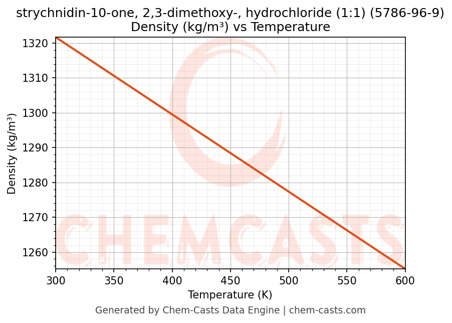 This page presents the temperature-dependent thermodynamic and transport properties of strychnidin-10-one, 2,3-dimethoxy-, hydrochloride (1:1) (CAS 5786-96-9) calculated at a constant pressure of 1 atm (101325 Pa) over the temperature range 250-500 K.