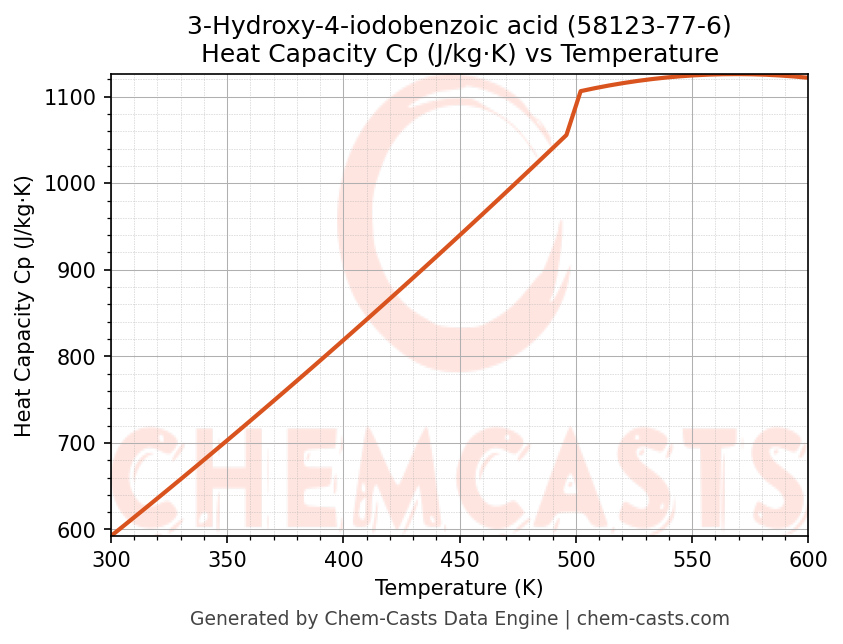 - Specific heat capacity (Cp) indicates the amount of energy required to raise the temperature of 3-Hydroxy-4-iodobenzoic acid and is critical for energy balance and heat-exchanger design.