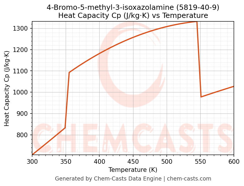 - Specific heat capacity (Cp) indicates the amount of energy required to raise the temperature of 4-Bromo-5-methyl-3-isoxazolamine and is critical for energy balance and heat-exchanger design.