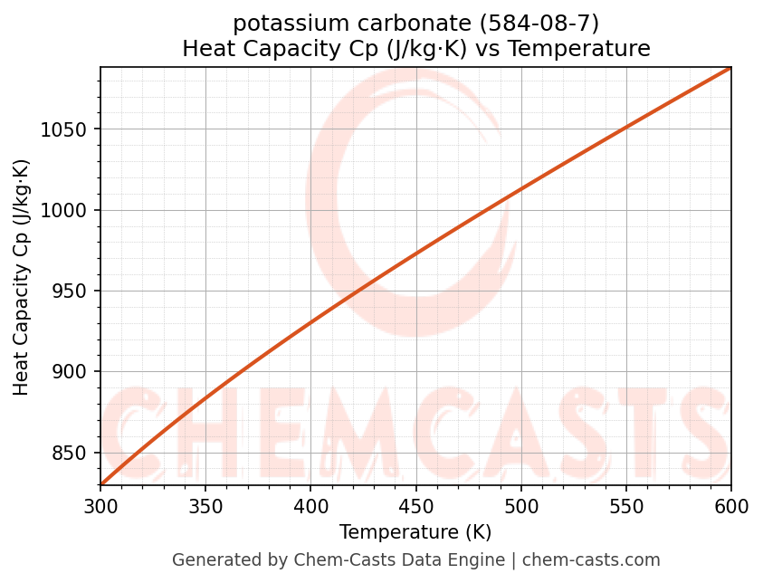 - Specific heat capacity (Cp) indicates the amount of energy required to raise the temperature of potassium carbonate and is critical for energy balance and heat-exchanger design.