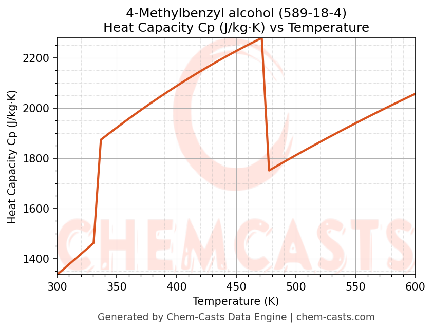 - Specific heat capacity (Cp) indicates the amount of energy required to raise the temperature of 4-Methylbenzyl alcohol and is critical for energy balance and heat-exchanger design.