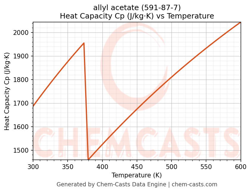 - Specific heat capacity (Cp) indicates the amount of energy required to raise the temperature of allyl acetate and is critical for energy balance and heat-exchanger design.