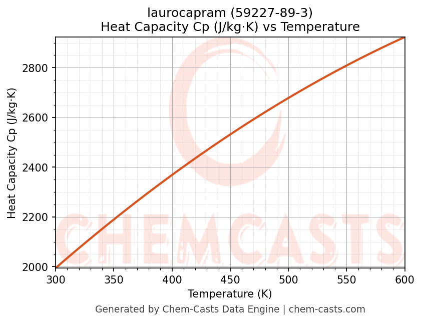 - Specific heat capacity (Cp) indicates the amount of energy required to raise the temperature of laurocapram and is critical for energy balance and heat-exchanger design.