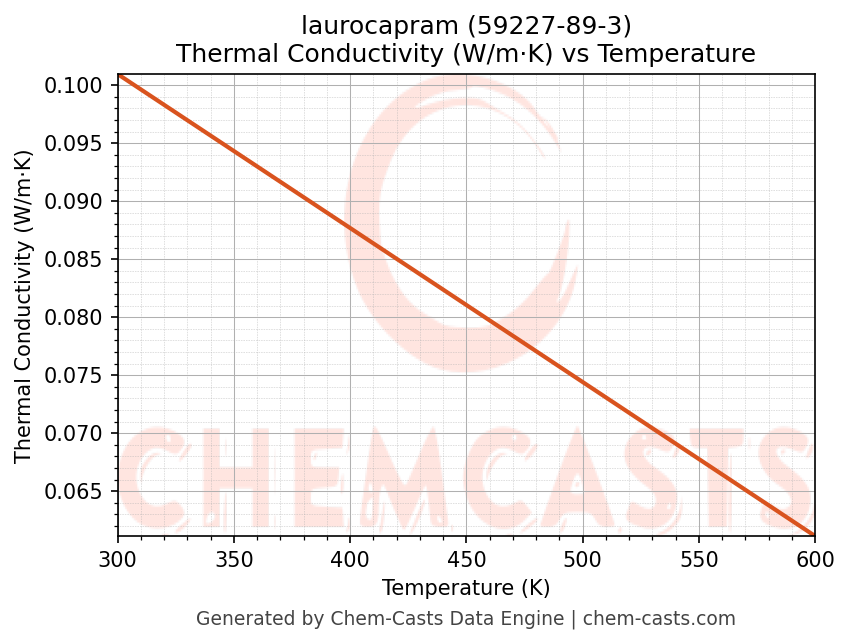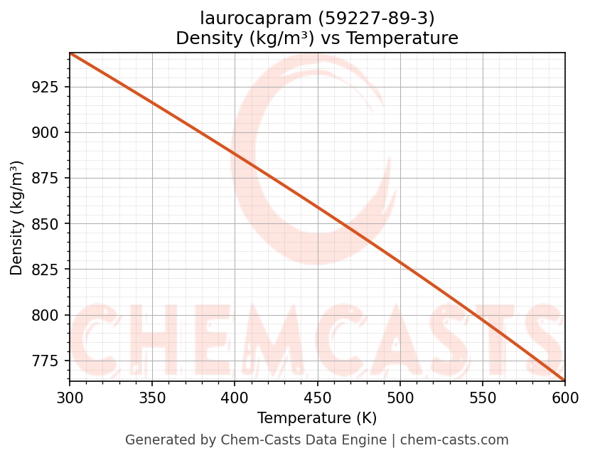 This page presents the temperature-dependent thermodynamic and transport properties of laurocapram (CAS 59227-89-3) calculated at a constant pressure of 1 atm (101325 Pa) over the temperature range 250-500 K.