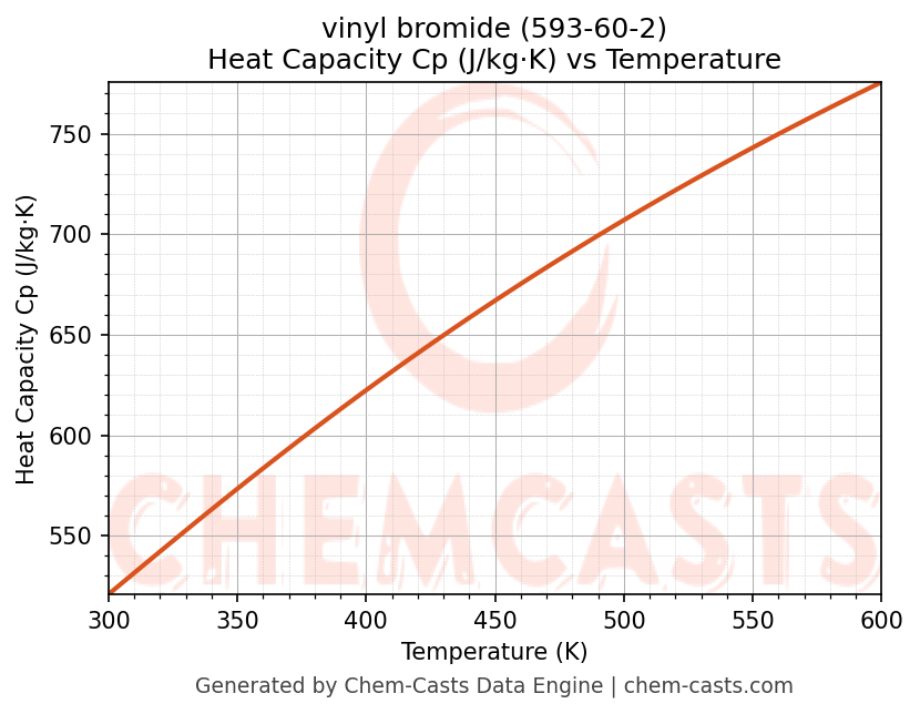 - Specific heat capacity (Cp) indicates the amount of energy required to raise the temperature of vinyl bromide and is critical for energy balance and heat-exchanger design.