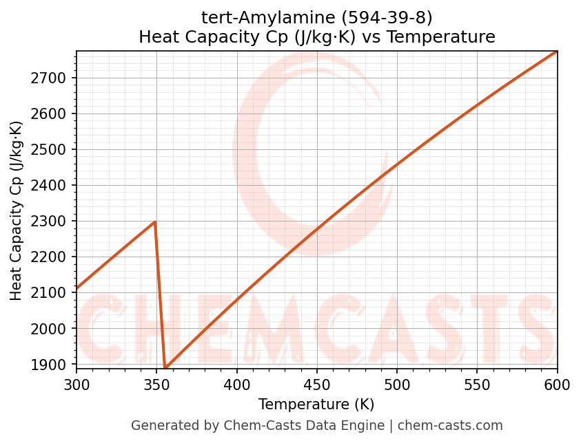 - Specific heat capacity (Cp) indicates the amount of energy required to raise the temperature of tert-Amylamine and is critical for energy balance and heat-exchanger design.