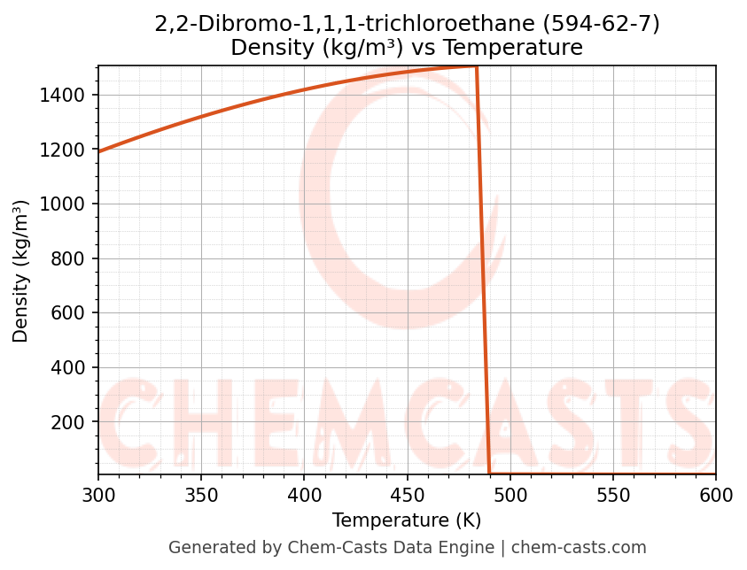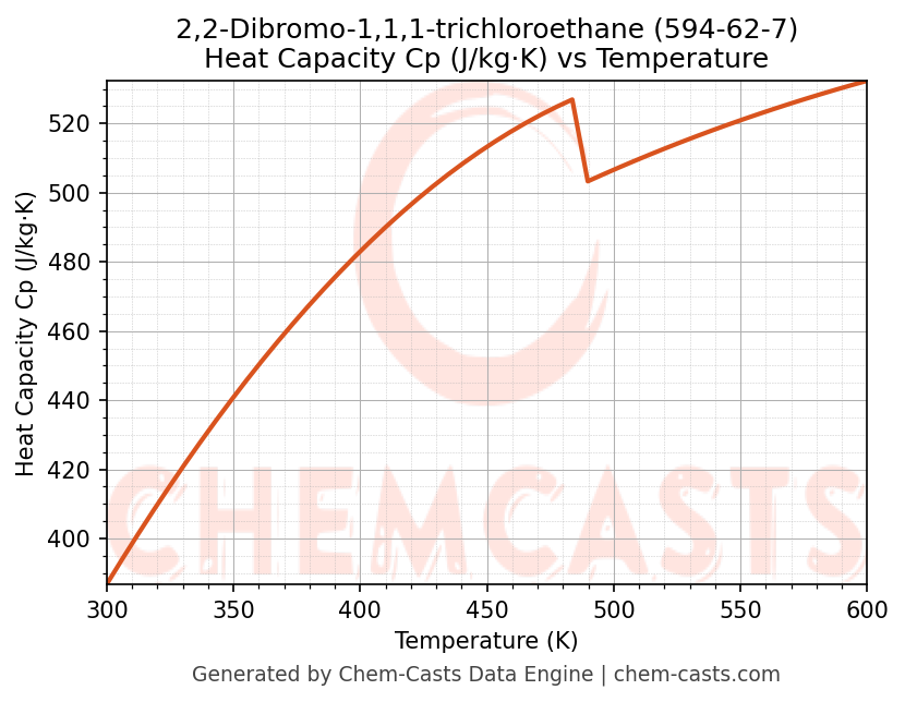 This page presents the temperature-dependent thermodynamic and transport properties of 2,2-Dibromo-1,1,1-trichloroethane (CAS 594-62-7) calculated at a constant pressure of 1 atm (101325 Pa) over the temperature range 250-500 K.