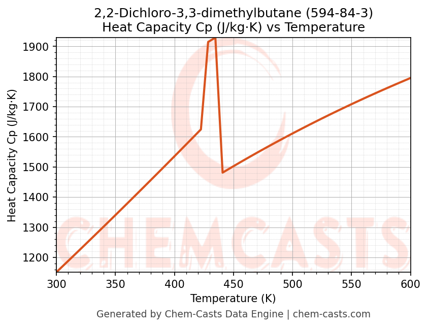 - Specific heat capacity (Cp) indicates the amount of energy required to raise the temperature of 2,2-Dichloro-3,3-dimethylbutane and is critical for energy balance and heat-exchanger design.