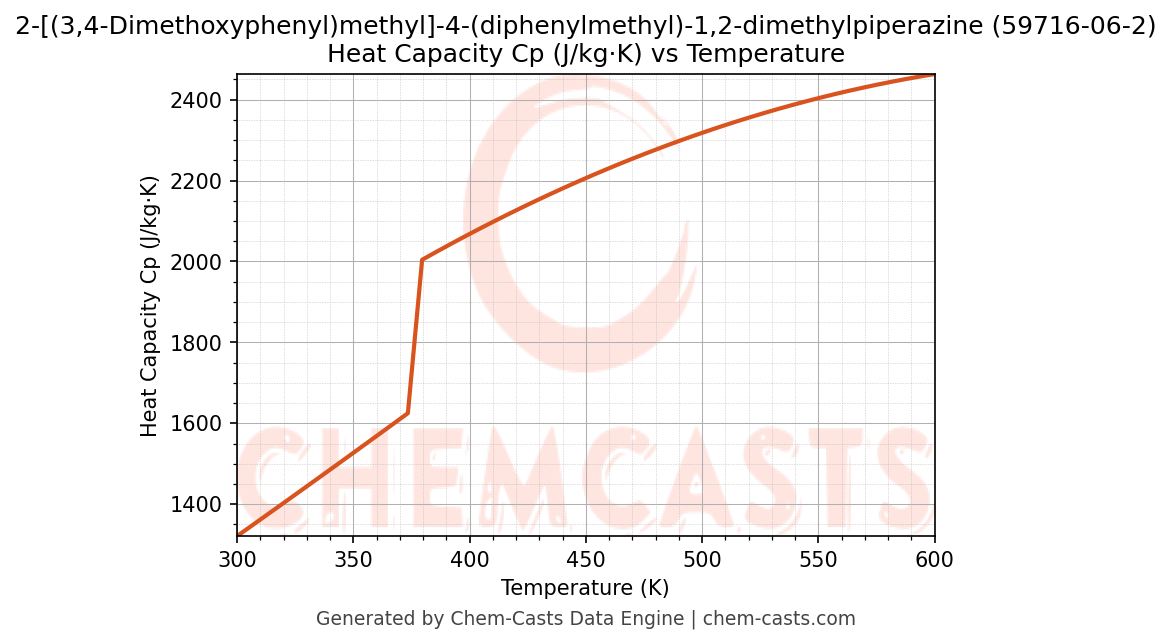 ![Heat Capacity (Cp) vs Temperature chart for 2-[(3,4-Dimethoxyphenyl)methyl]-4-(diphenylmethyl)-1,2-dimethylpiperazine (CAS 59716-06-2)](https://chemcasts-prod.s3.ap-south-1.amazonaws.com/chem_plots_pconst/59716-06-2-cp.png)