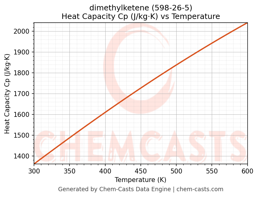 - Specific heat capacity (Cp) indicates the amount of energy required to raise the temperature of dimethylketene and is critical for energy balance and heat-exchanger design.