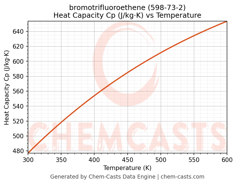 - Specific heat capacity (Cp) indicates the amount of energy required to raise the temperature of bromotrifluoroethene and is critical for energy balance and heat-exchanger design.