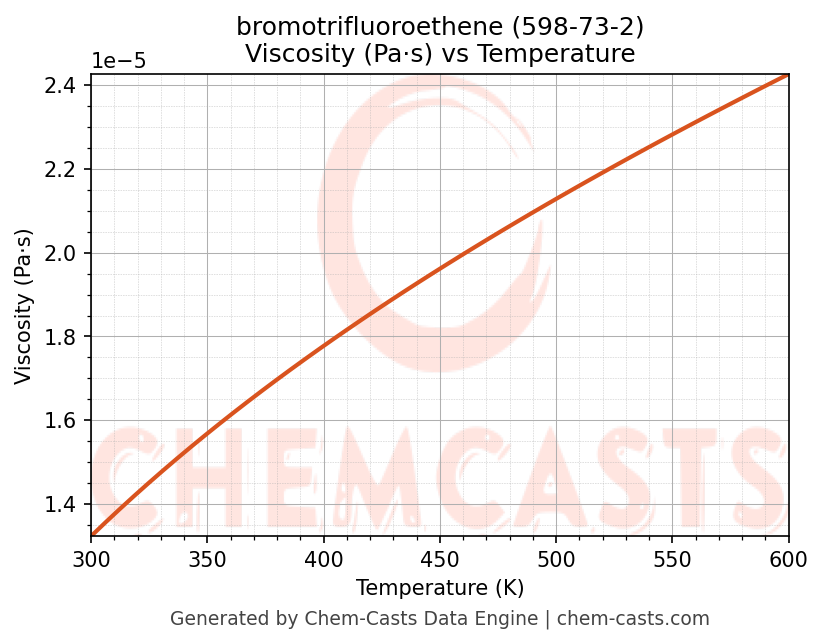 This page presents the temperature-dependent thermodynamic and transport properties of bromotrifluoroethene (CAS 598-73-2) calculated at a constant pressure of 1 atm (101325 Pa) over the temperature range 250-500 K.