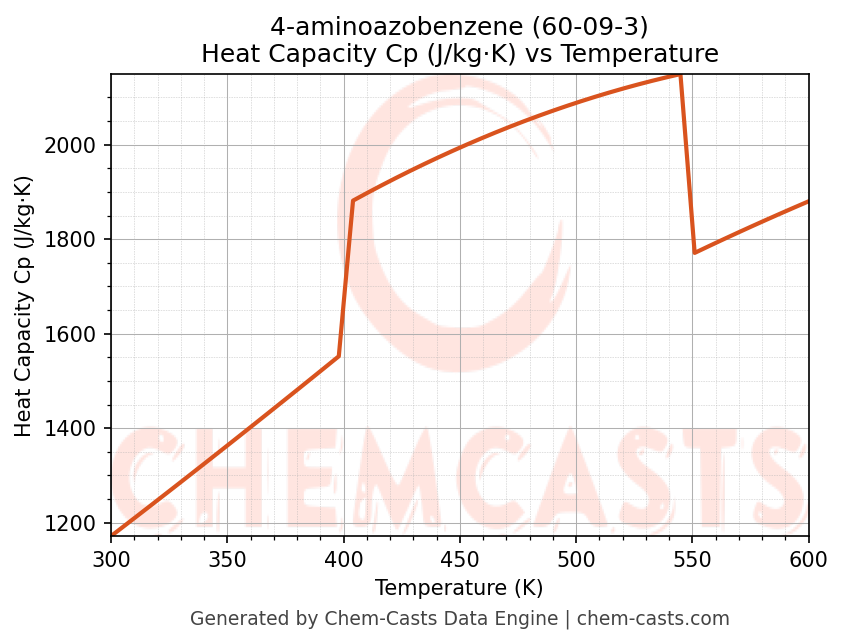 - Specific heat capacity (Cp) indicates the amount of energy required to raise the temperature of 4-aminoazobenzene and is critical for energy balance and heat-exchanger design.