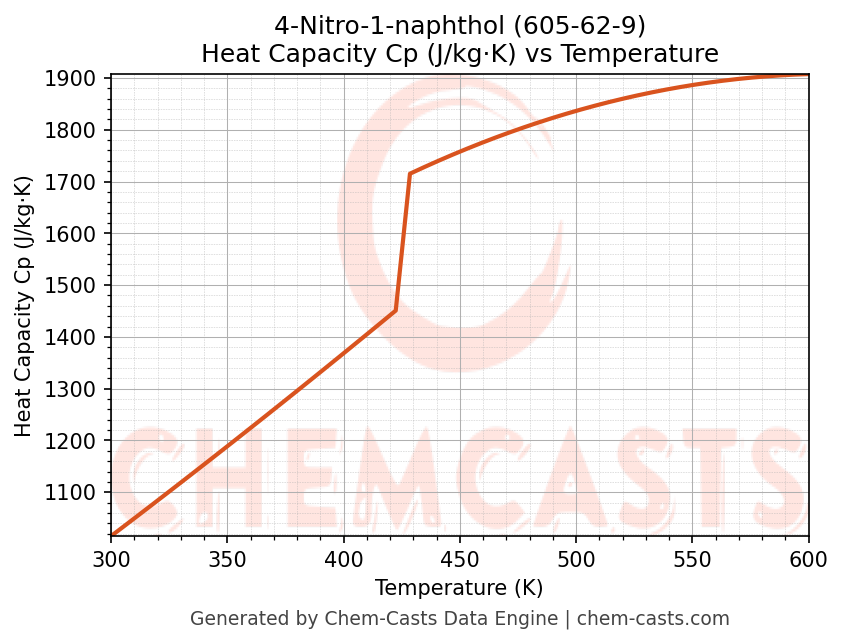 - Specific heat capacity (Cp) indicates the amount of energy required to raise the temperature of 4-Nitro-1-naphthol and is critical for energy balance and heat-exchanger design.