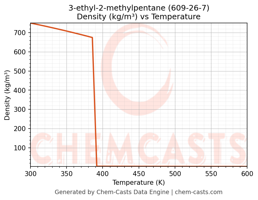 This page presents the temperature-dependent thermodynamic and transport properties of 3-ethyl-2-methylpentane (CAS 609-26-7) calculated at a constant pressure of 1 atm (101325 Pa) over the temperature range 250-500 K.