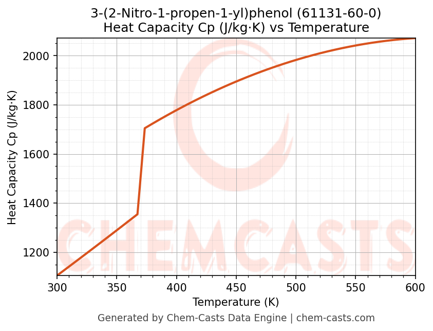 - Specific heat capacity (Cp) indicates the amount of energy required to raise the temperature of 3-(2-Nitro-1-propen-1-yl)phenol and is critical for energy balance and heat-exchanger design.