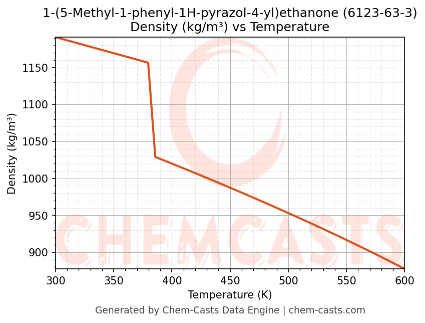 This page presents the temperature-dependent thermodynamic and transport properties of 1-(5-Methyl-1-phenyl-1H-pyrazol-4-yl)ethanone (CAS 6123-63-3) calculated at a constant pressure of 1 atm (101325 Pa) over the temperature range 250-500 K.