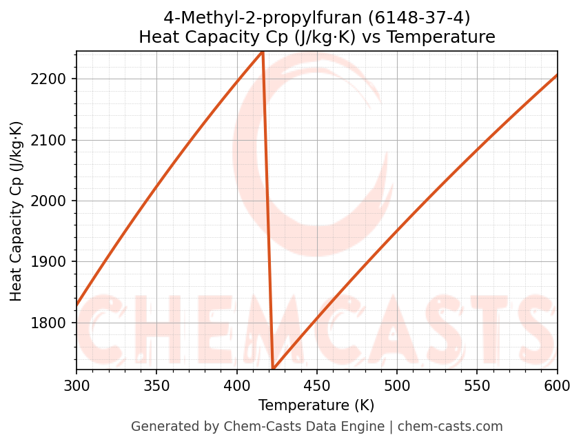 - Specific heat capacity (Cp) indicates the amount of energy required to raise the temperature of 4-Methyl-2-propylfuran and is critical for energy balance and heat-exchanger design.