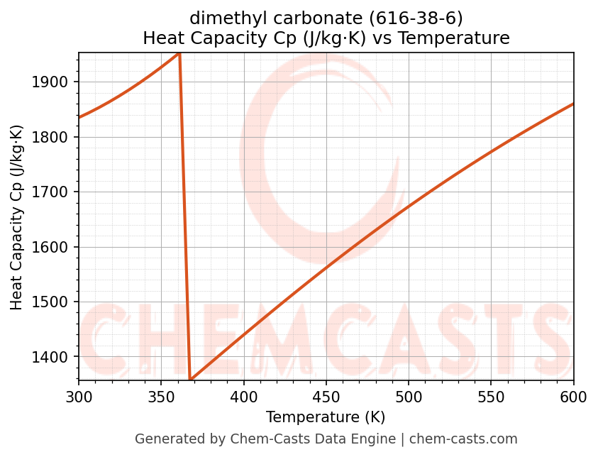 - Specific heat capacity (Cp) indicates the amount of energy required to raise the temperature of dimethyl carbonate and is critical for energy balance and heat-exchanger design.