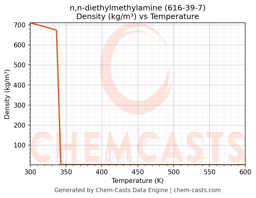 - Specific heat capacity (Cp) indicates the amount of energy required to raise the temperature of n,n-diethylmethylamine and is critical for energy balance and heat-exchanger design.