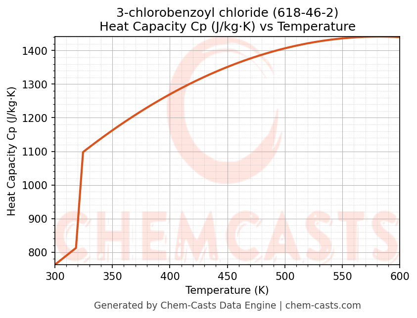 - Specific heat capacity (Cp) indicates the amount of energy required to raise the temperature of 3-chlorobenzoyl chloride and is critical for energy balance and heat-exchanger design.