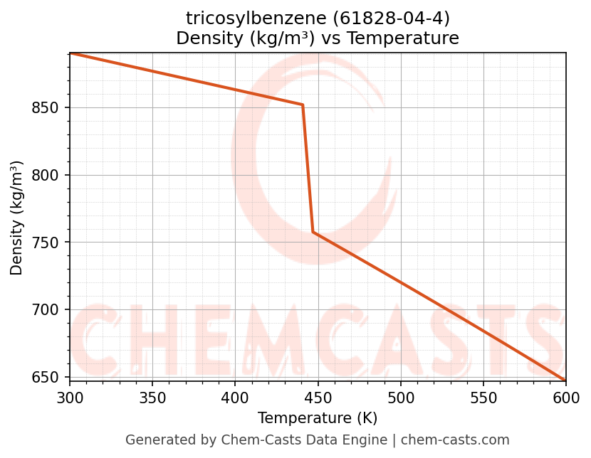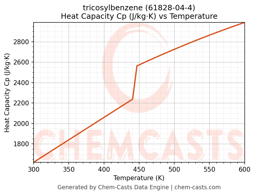 - Specific heat capacity (Cp) indicates the amount of energy required to raise the temperature of tricosylbenzene and is critical for energy balance and heat-exchanger design.