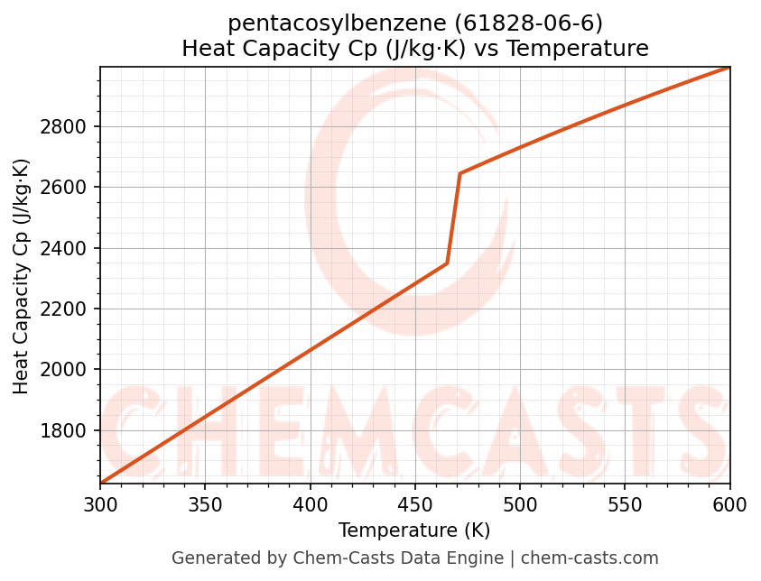- Specific heat capacity (Cp) indicates the amount of energy required to raise the temperature of pentacosylbenzene and is critical for energy balance and heat-exchanger design.
