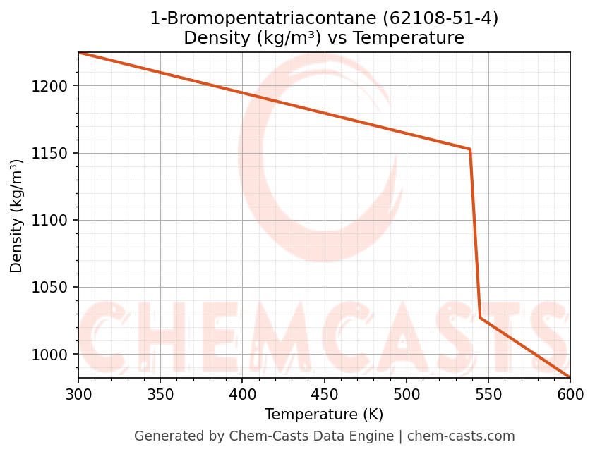 This page presents the temperature-dependent thermodynamic and transport properties of 1-Bromopentatriacontane (CAS 62108-51-4) calculated at a constant pressure of 1 atm (101325 Pa) over the temperature range 250-500 K.
