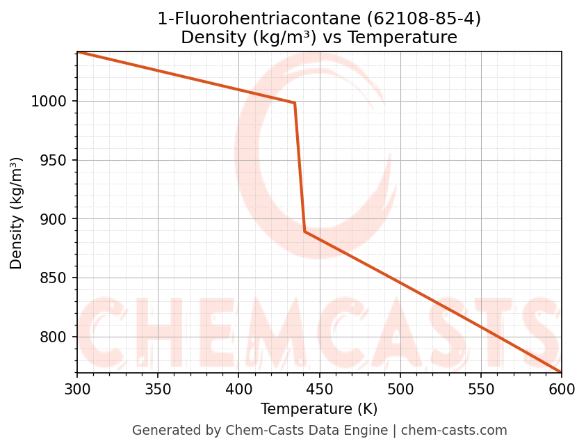 This page presents the temperature-dependent thermodynamic and transport properties of 1-Fluorohentriacontane (CAS 62108-85-4) calculated at a constant pressure of 1 atm (101325 Pa) over the temperature range 250-500 K.