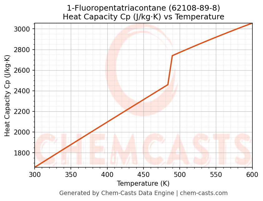 - Specific heat capacity (Cp) indicates the amount of energy required to raise the temperature of 1-Fluoropentatriacontane and is critical for energy balance and heat-exchanger design.