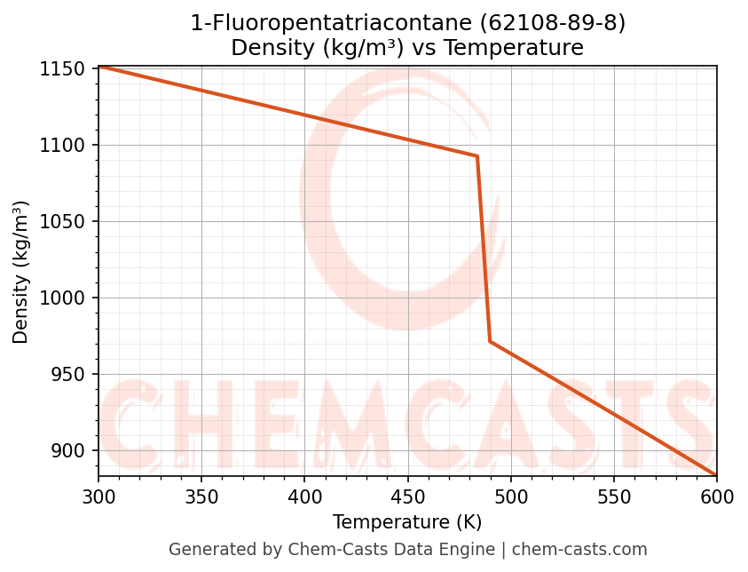 This page presents the temperature-dependent thermodynamic and transport properties of 1-Fluoropentatriacontane (CAS 62108-89-8) calculated at a constant pressure of 1 atm (101325 Pa) over the temperature range 250-500 K.