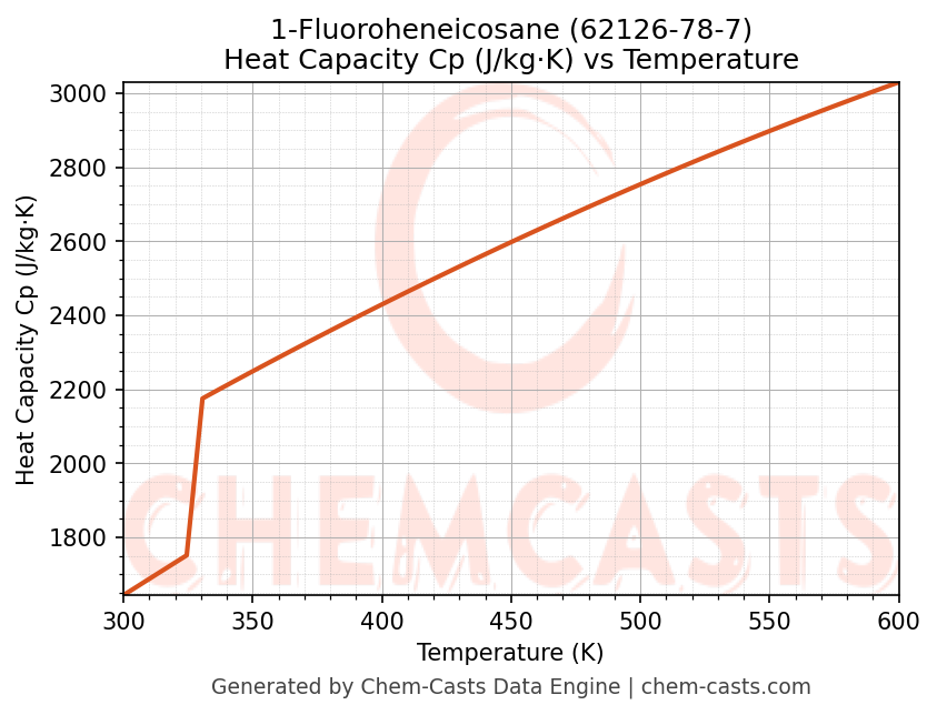 - Specific heat capacity (Cp) indicates the amount of energy required to raise the temperature of 1-Fluoroheneicosane and is critical for energy balance and heat-exchanger design.