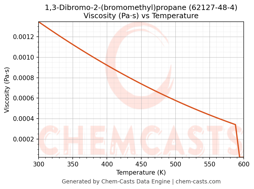 This page presents the temperature-dependent thermodynamic and transport properties of 1,3-Dibromo-2-(bromomethyl)propane (CAS 62127-48-4) calculated at a constant pressure of 1 atm (101325 Pa) over the temperature range 250-500 K.