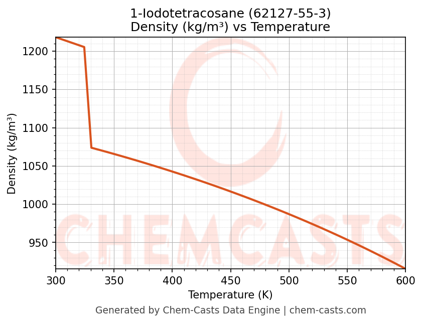 This page presents the temperature-dependent thermodynamic and transport properties of 1-Iodotetracosane (CAS 62127-55-3) calculated at a constant pressure of 1 atm (101325 Pa) over the temperature range 250-500 K.