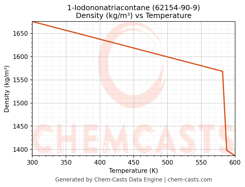 This page presents the temperature-dependent thermodynamic and transport properties of 1-Iodononatriacontane (CAS 62154-90-9) calculated at a constant pressure of 1 atm (101325 Pa) over the temperature range 250-500 K.