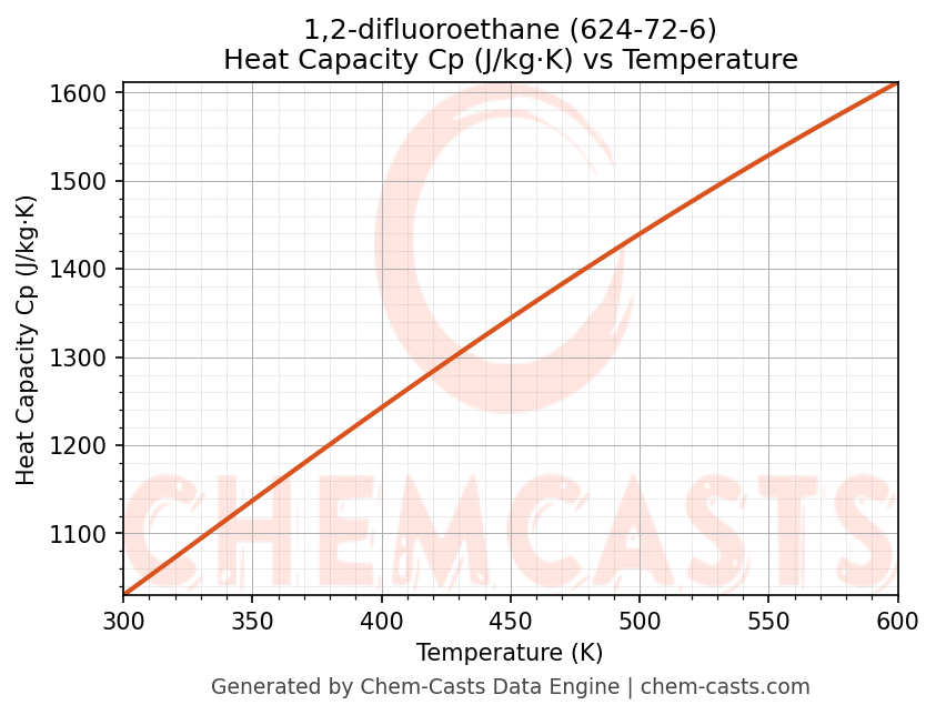 - Specific heat capacity (Cp) indicates the amount of energy required to raise the temperature of 1,2-difluoroethane and is critical for energy balance and heat-exchanger design.