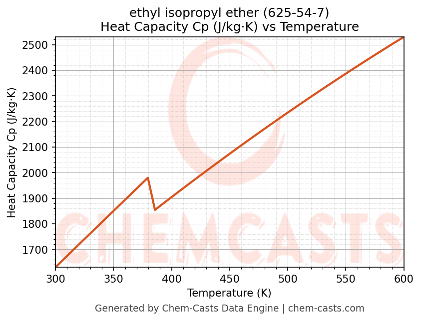 - Specific heat capacity (Cp) indicates the amount of energy required to raise the temperature of ethyl isopropyl ether and is critical for energy balance and heat-exchanger design.
