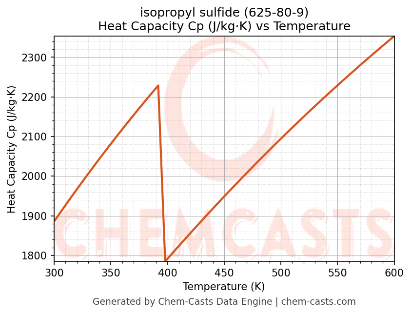 - Specific heat capacity (Cp) indicates the amount of energy required to raise the temperature of isopropyl sulfide and is critical for energy balance and heat-exchanger design.