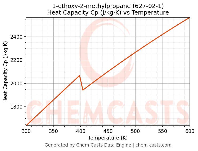 - Specific heat capacity (Cp) indicates the amount of energy required to raise the temperature of 1-ethoxy-2-methylpropane and is critical for energy balance and heat-exchanger design.