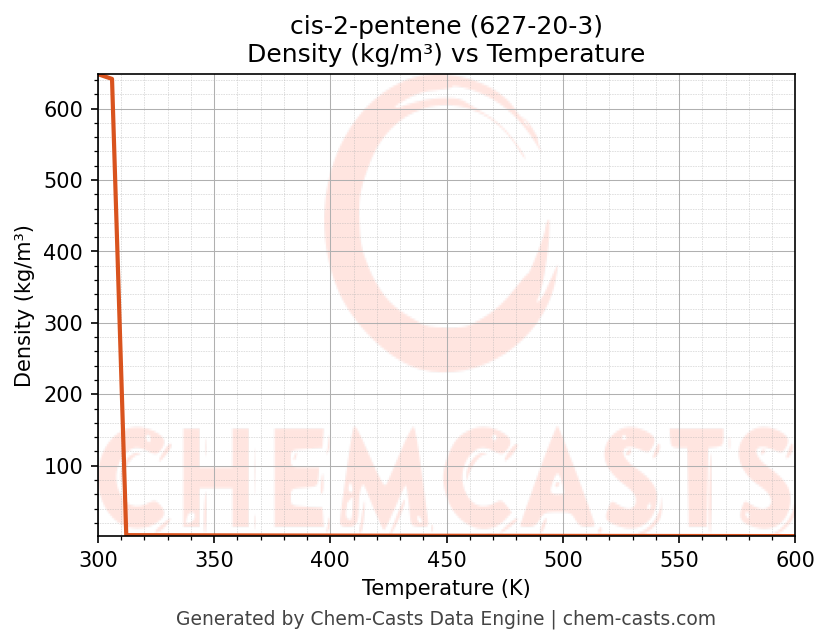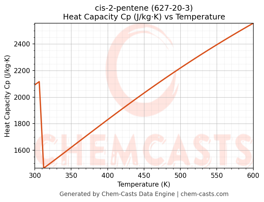 - Specific heat capacity (Cp) indicates the amount of energy required to raise the temperature of cis-2-pentene and is critical for energy balance and heat-exchanger design.