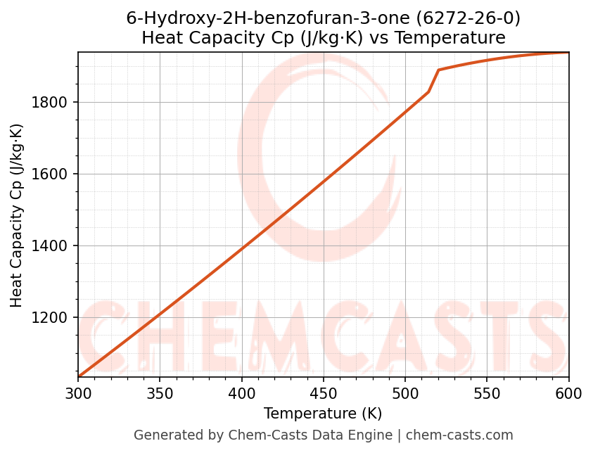 - Specific heat capacity (Cp) indicates the amount of energy required to raise the temperature of 6-Hydroxy-2H-benzofuran-3-one and is critical for energy balance and heat-exchanger design.