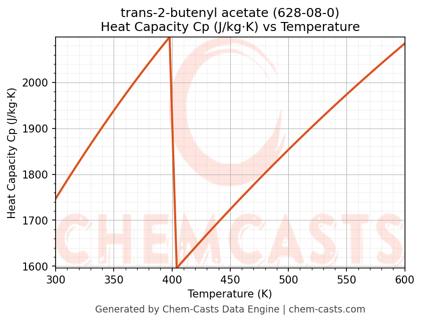 - Specific heat capacity (Cp) indicates the amount of energy required to raise the temperature of trans-2-butenyl acetate and is critical for energy balance and heat-exchanger design.